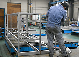 お客様より出図された図面を製作現場で適材適所に配布しています。納期遅れ、ミスなどがないよう現場打合せを行い、標準化・ミスを防ぎながら溶接作業をしています。